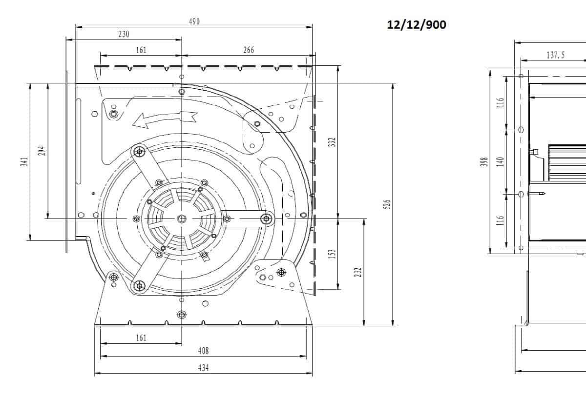 Šírka (mm):750 Hĺbka (mm):750 Výška (mm):750 Napätie (Volt):230 Ampér (A):6,8 Výkon (kW):0,9 Výfuk (mm):400 Kapacita vm3 vzduchu/ hod:6000 Rýchlosť (ot./min.):900