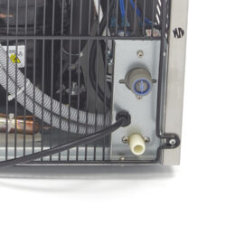 Pretože je tento výrobník vločkového ľadu chladený vzduchom, je dôležité, aby v zadnej časti zostal dostatočný priestor na prúdenie vzduchu. Na zaistenie dobrej bezpečnosti práce je spotrebič vybavený ochranou proti preťaženiu. Dodávané hadice je možné použiť na pripojenie drviča k prívodu pitnej vody. Zásobník na vodu sa potom automaticky naplní, takže výrobník ľadu môže nepretržite vyrábať nový vločkový ľad bez toho, aby ste museli čokoľvek robiť. Výrobník ľadu nie je vybavený vypúšťacím čerpadlom. Vypúšťacia hadica by mala byť pripojená nižšie, než je výtok zo stroja. Účinný chladiaci systém zaisťuje vysokú kvalitu ľadu a použité chladivo je R290. Prípadné poruchy sa zobrazujú na užívateľsky prívetivom ovládacom paneli, takže vidíte, kedy má spotrebič chybu, či je zásobník plný alebo kedy je hladina vody príliš nízka.