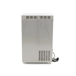 Tento výrobník drveného ľadu je chladený vzduchom cez zadnú stranu, takže potrebuje dostatočný priestor na prúdenie vzduchu. Je vybavený ochranou proti preťaženiu. Môžete si tak byť istí, že stroj nebude preťažený, a môžete s ním pracovať bezpečnejšie. Na pripojenie výrobníka ľadu k prívodu vody stačí použiť hadice, ktoré sú súčasťou dodávky. Výrobník ľadu sa automaticky doplní vodou, takže môže pokračovať vo výrobe ľadu bez akýchkoľvek ťažkostí alebo vyžadovania vášho úsilia. Výrobník ľadu nie je vybavený vypúšťacím čerpadlom. Vypúšťacia hadica by mala byť pripojená nižšie, než je výstupný otvor stroja. Na chladenie spotrebiča sa používa účinný chladiaci systém s chladivom R290. V prednej časti sa nachádza užívateľsky prívetivý ovládací panel s výstražnými kontrolkami, ktoré signalizujú poruchu, naplnenie zásobníka alebo príliš nízku hladinu vody.