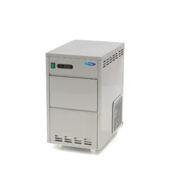 Tento model sa dobre hodí na umiestnenie pod pult alebo bar. K ľadovým vločkám tak budete mať ľahký prístup, kedykoľvek to bude potrebné. Tento stroj na ľad je chladený vodou, takže sa veľmi hodí do teplejších priestorov, ako je terasa, plážový pavilón alebo iné akcie. Aby sa stroj na ľad nepreťažoval, je vybavený špeciálnou ochranou proti preťaženiu. Tento stroj na drvený ľad môžete pripojiť k akejkoľvek prípojke pitnej vody pomocou dodaných hadíc. Automatický prívod vody zaisťuje, že je stroj vždy pripravený na ďalšiu výrobu ľadu, a znižuje tak prípadnú potrebu ručnej práce. Výrobník ľadu nie je vybavený vypúšťacím čerpadlom. Vypúšťacia hadica by mala byť pripojená nižšie, než je výstupný otvor stroja. Vďaka účinnému chladiacemu systému získate aj vysoko kvalitné ľadové vločky. Chladivo, ktoré sa používa, je R290. Na ovládacom paneli sa nachádza niekoľko výstražných kontroliek, ktoré presne signalizujú poruchu, naplnenie zásobníka alebo príliš nízku hladinu vody.