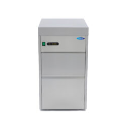 Či už vločkový ľad používate na udržanie chladu a čerstvosti potravín, na ich prepravu alebo na atraktívnu prezentáciu, s týmto výrobníkom ľadu chladeným vodou budete mať vždy po ruke dostatok ľadu pripraveného na servírovanie. Tento výrobník ľadu má kapacitu až 50 kg drveného ľadu za 24 hodín. Má tiež špeciálny zásobník, ktorý uchová 10 kg ľadu v chlade. K tejto objednávke obdržíte praktickú lopatku na ľad, ktorá vám pomôže ľad zo stroja hygienicky vybrať. Tento model je možné jednoducho inštalovať pod bar alebo pod pult.