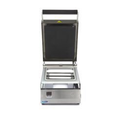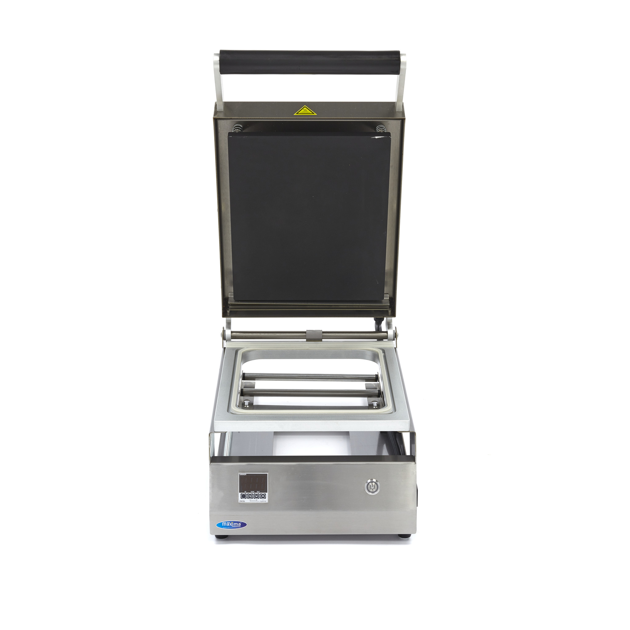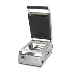 - Kompaktná poloautomatická vrchná zváračka tácok a nádob na jedlo